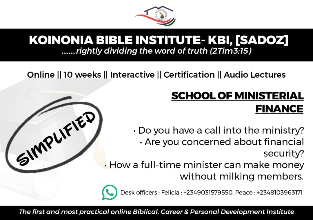 This course is designed to equip and empower you to navigate the financial aspect of ministry with confidence. It addresses the financial concerns that most ministers have and provides you with strategies to effectively manage your finances and achieve financial stability.